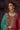 A red fuchsia raw silk short shirt, richly worked in gold embroidery with resham and dabka, highlighted by light pink and teal floral motifs. It is paired with intricately hand-embellished boot-cut pants. The look is completed with a turquoise organza dupatta, detailed with gota floral work spread in an even pattern. The ensemble reflects old-world techniques of embroidery and embellishment, carefully preserved through South Asian craft traditions